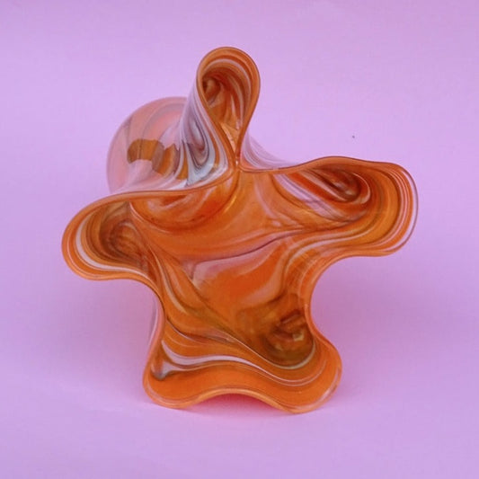 AusverkauftVintage, orange vase, ruffle, tall, handmade