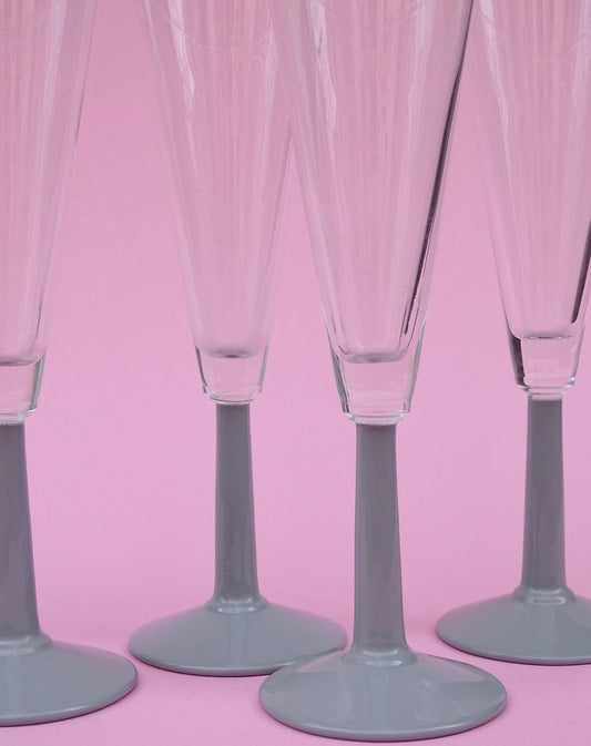Vintage, set of 4 glasses with gray stems for wine/sparkling wine