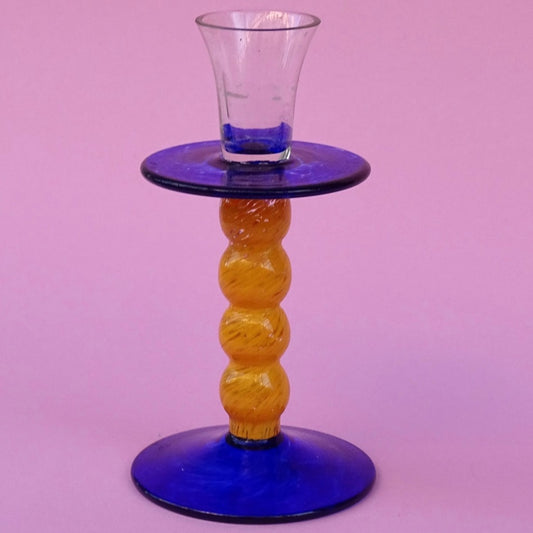 Vintage, handmade, yellow-blue, beautiful candlesticks