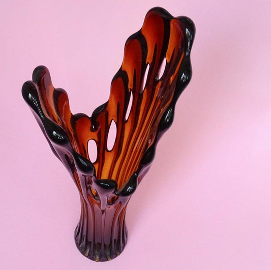 AusverkauftVintage, orange vase, ruffle, tall, handmade