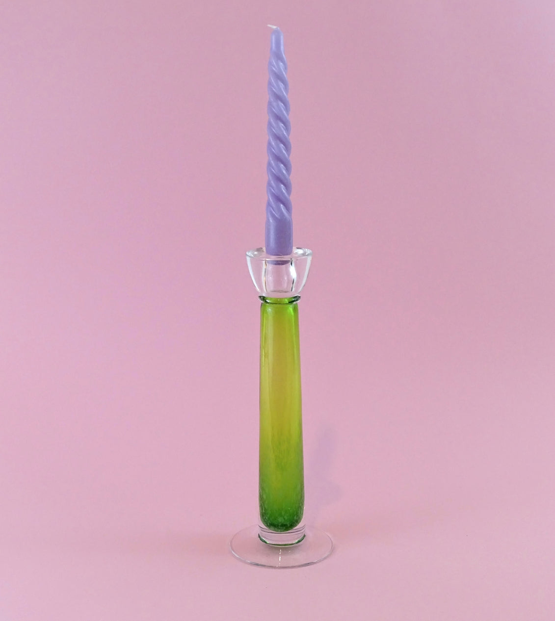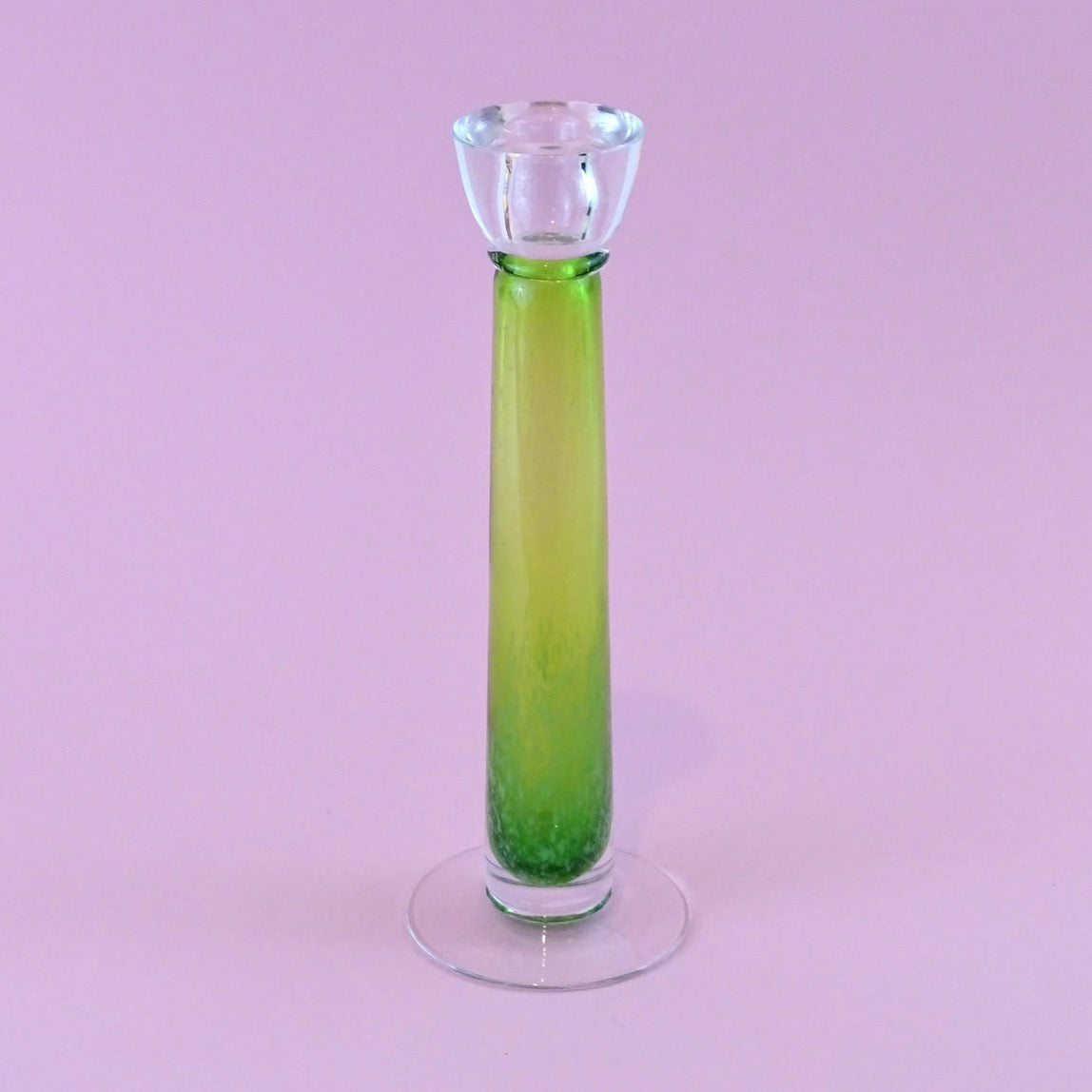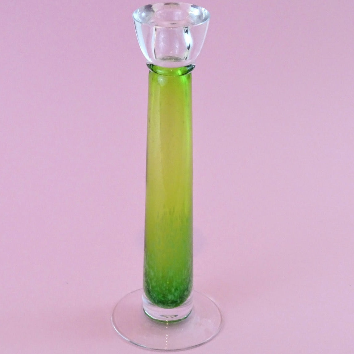Mouth blown, vintage, tall, light green candlestick